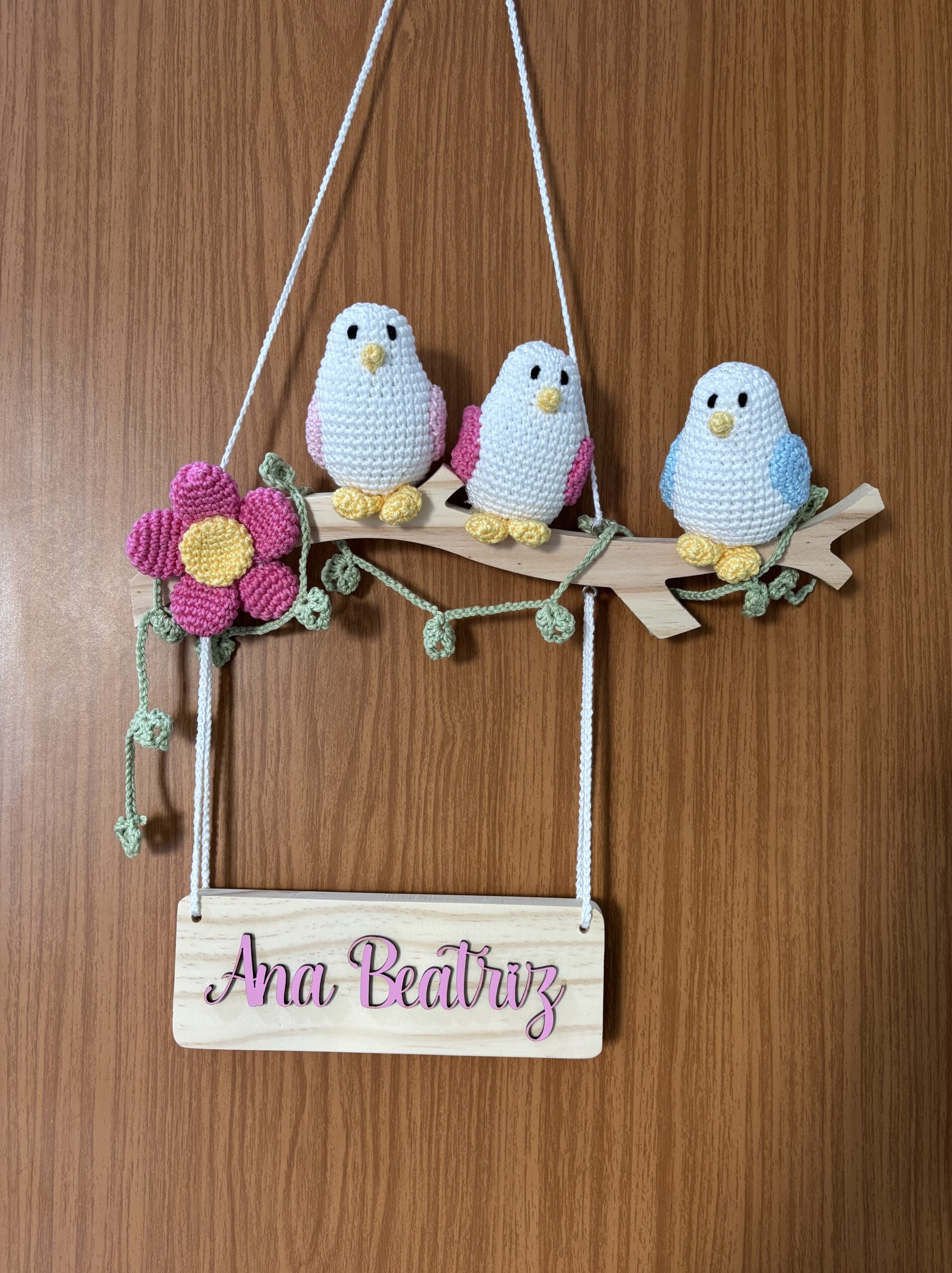 Porta Maternidade em Amigurumi – Galho com Passarinhos